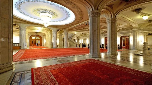 罗马尼亚人民宫位于布加勒斯特市西南部的山坡上,议会宫的建筑设计和施工均由罗马尼亚人自行完成,所用建材和家具多为罗本国生产,加之有12层高,这是罗马尼亚人高超建筑技术的体现,被视作罗马尼亚人们勤劳和智慧的结晶以及世界上体量庞大的建筑之一,且被认为是这个国家二十世纪中伟大的建筑。