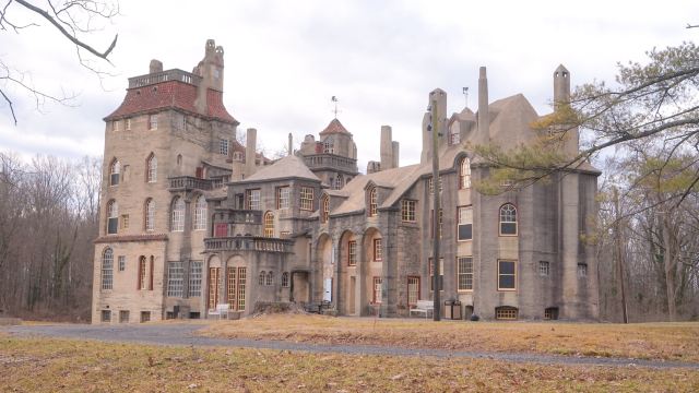 ▪️古堡位于一个巨大的庭院内,门前有一条林荫小路,一路穿过林荫路,便引入眼帘巨大的城堡,城堡的后面便是停车场,城堡后方为Henry Chapman Mercer的陶器厂,现在也作为博物馆开放给公众参观