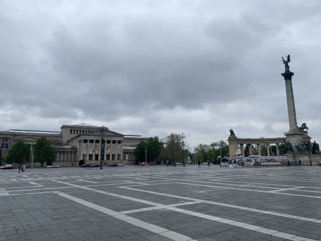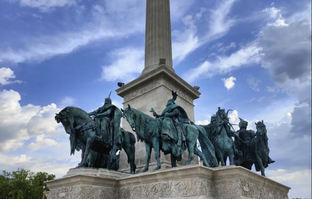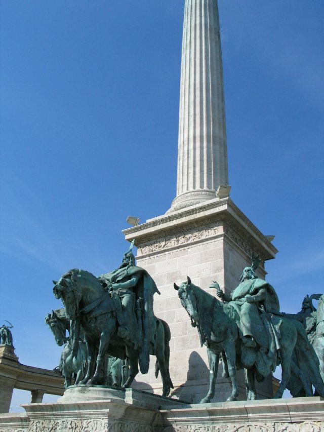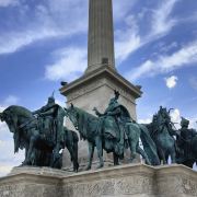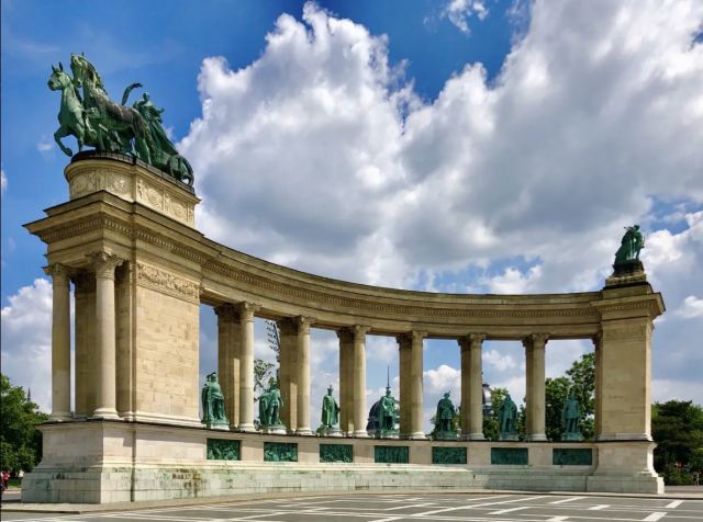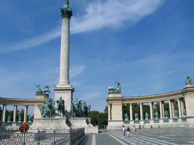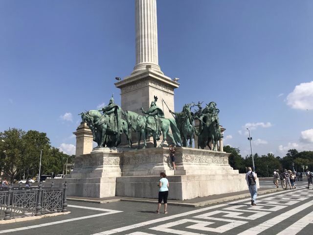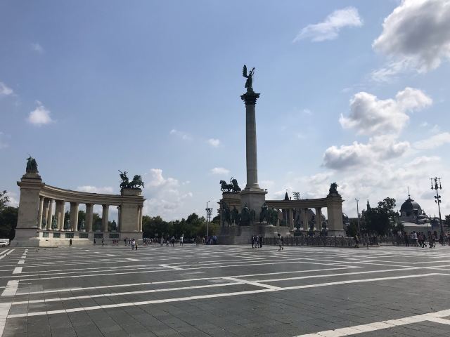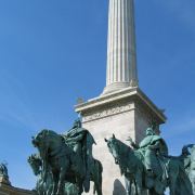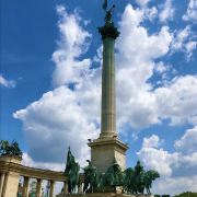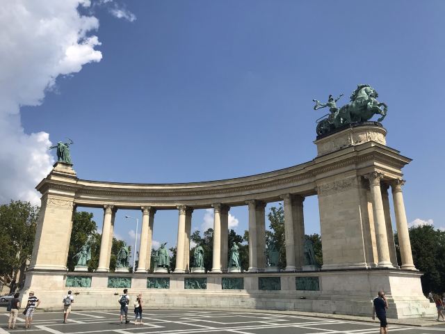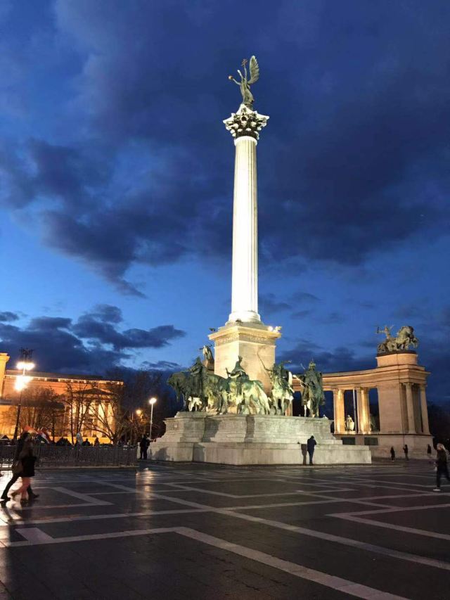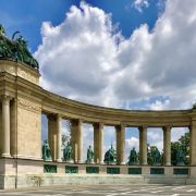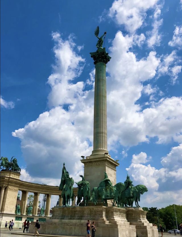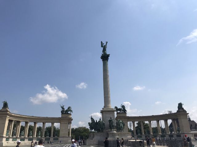 千年纪念碑前面是一个广场,中间有一个36米高的纪念柱,左右以柱廊辅助。柱廊当中有14个人像,是匈牙利历史上的统治者。同时柱廊顶端树立有4座雕像,这4座雕像分别代表了战争、繁荣、和平和知识,非常有意义,可以好好瞧瞧。