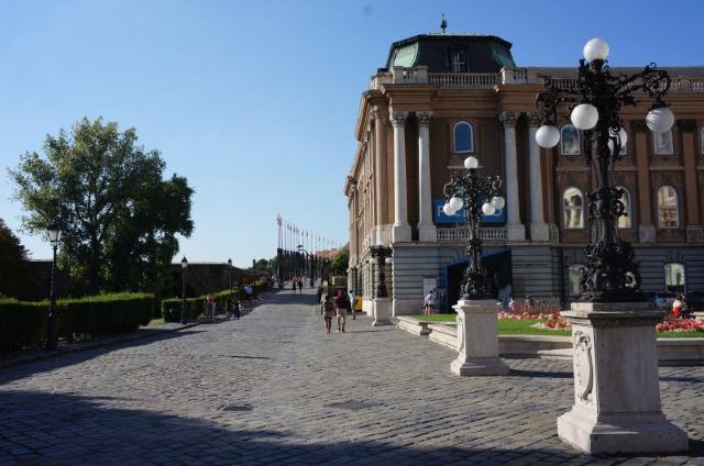 布达城堡内的正殿现为国家画廊,展出了极富有历史代表意义的匈牙利画作、包括中世纪和文艺复兴时期的石雕,哥特式木雕、祭坛等艺术品等。位于偏殿的布达佩斯历史博物馆展出了考古发掘中出土的悉数文物和布达城堡中保存下来的珍品,较古老的藏品可以追溯到4万年前,来此,除了可以一睹皇宫内部的真容外,你还可以了解千年前布达佩斯人的生活。另外,历史博物馆门前的“战争与和平”青铜雕像也很值得一看。与布达佩斯历史博物馆毗邻的是国家图书馆,这里经常有临时展览以供参观,你可以看到千年前的古董书、地图、瓷器、民间艺术品等。
