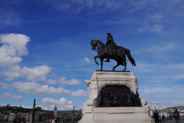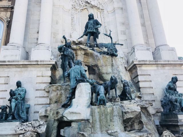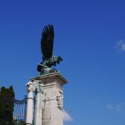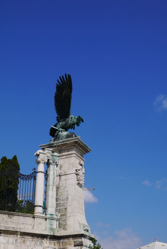 布达城堡的入口处摆放着匈牙利神话中图鲁尔鸟(Turul Bird)的雕像,是1896年为纪念匈牙利人迁居此地1000周年而雕塑的。传说当年的匈牙利人来到这里,就是“图鲁尔”在前面飞翔带路的。雄鹰展翅高飞,双脚抓着一把剑叫"阿提拉之剑",有征服世界的神力。