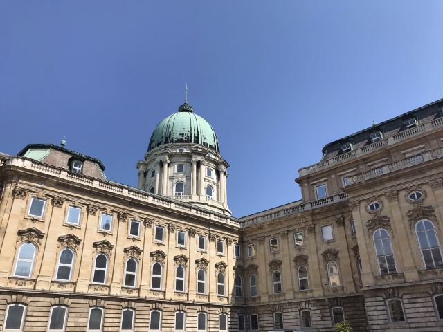 布达城堡始建于1242年,位于多瑙河西岸,匈牙利国王为了抵御鞑靼人入侵而建。后因战争易主被改建成清真寺,曾一度毁于火灾,1930年重修后又遭到了二战的浩劫,可谓命途多舛,现在我们能看到的皇宫是其于1950年在战后修复的样子。