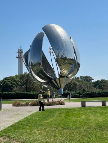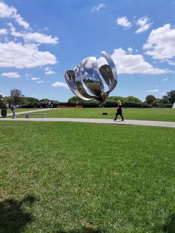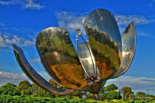 阿根廷钢花象征是百花的代表。其西班牙语可以写做Floralis Generico。 花朵高23米,花的直径在关闭时是16米,开放时32米。 花朵由6片大花瓣组成,总重18吨。 花朵的基座是一个直径44米的水池。钢花建在阿根廷首Recoleta区联合国广场花园内,毗邻布宜诺斯艾利斯大学法学院。