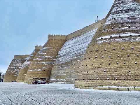 最初建于公元 5 世纪左右,有人居住。除了作为军事建筑外,布哈拉堡实际上还包括一个城镇,在堡垒的大部分历史中,各个王室都居住在这里,这些王室统治着布哈拉周边地区。布哈拉堡一直被用作堡垒,直到 1920 年被俄罗斯占领。
