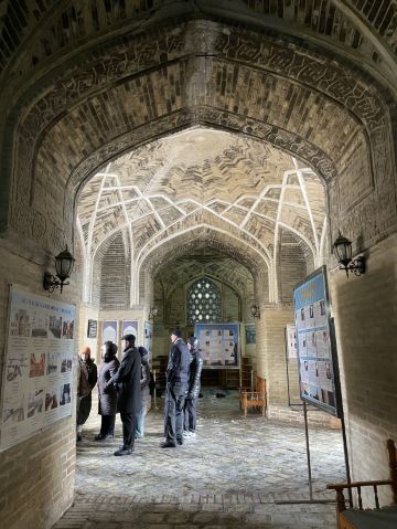在贾梅清真寺遗址上建造的最大的清真寺之一,贾梅清真寺建于 8、9 世纪和 12 世纪。(根据在清真寺 庭院内外进行的考古调查结果确定)。其现在的样子是1514年布哈拉汗谢班 尼伍拜杜拉汗统治时期修建的。