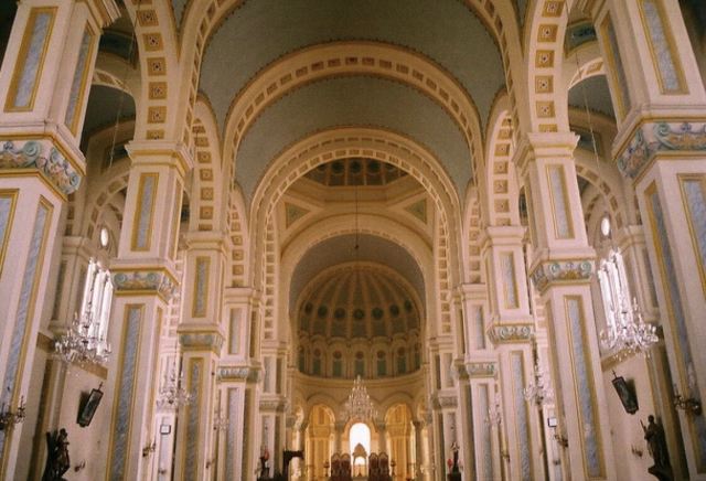 位于丘顶的旧教堂原本装饰着3幅印有圣安娜的巨型彩色玻璃窗,但在日本占领期间被破坏了,如今只剩下一幅完整的巨型玻璃窗。1948年共产主义军在当地非常活跃,而旧教堂也被占略而被宣布为禁区,新的教堂于1957在旧教堂2公里外建成,但旧教堂依然还是教徒们的焦点。