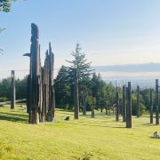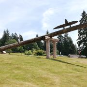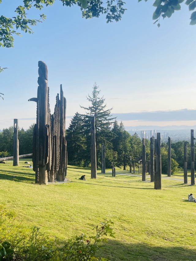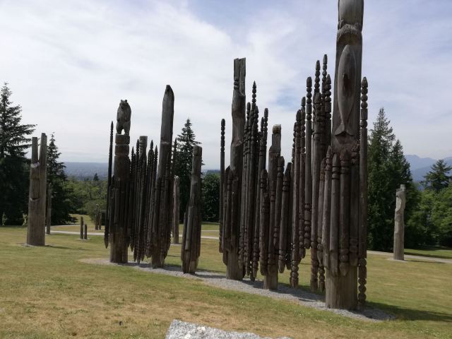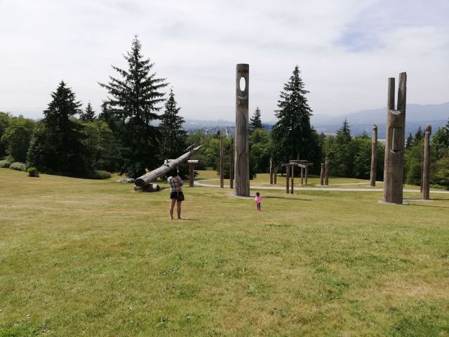 5分 超棒本那比山公园名列温哥华市公园排名第六,位于著名的SFU附近,坐公交车到sfu后,往回时,第三个站下车,往小路上走过去就是本那比山公园了。这公交站名叫westbound university Dr,这个站点周边很荒凉的,经常很少看到行人。由于sfu是建在山顶上的,所以如果从sfu走到本那比山公园,你会怀疑是否弄错了,因为路几乎是平的,没有上山的感觉,从下车的地方走过去直接就到本那比山公园的最高处,那里有一些木雕,有很多非常美丽的鲜花,各种颜色的都有。今天是周日(指加拿大时间),来玩的人虽然不多,但是还能让人感觉有点热闹。游客中印度人较多,第二是韩国人,今天中国人不多,我在sfu时问几个中国留学生,他们没有叫说过本那比山公园,还问了日本菜馆的中国服务员,也说没听说过,自然就不会游了。下了车后,往行车方向的右手边走,一直走,看到路就走,大概十分钟就到么园的精华处了,没有门的,周边任何小路都算门。当你到了精华处,即木雕处,你会很兴奋,因为风景太美了,木雕与神话故事有关,也与日本的一个城市有关,这个日本城市是湿哥华本那比的姐妹城市。站在精华处的围栏处,往下远处看,可以看到美丽的海湾,海湾在山间穿行,有轮船和帆船行驶其中,甚是壮观,此时,你才意识到你在山顶。这是非常值得一游的地方,最好自己开车去,有停车场,精华处有一个歺厅,也有野烦处。