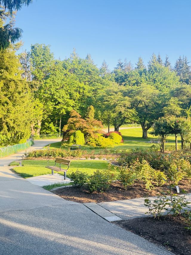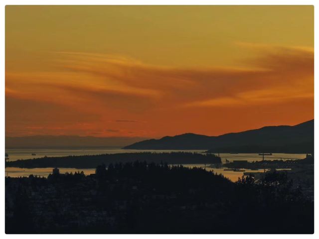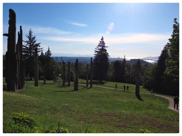 当然位于Burnaby Mountain山顶的这个公园并非只有春夏才值得游玩。站在公园里,南面可以看到Burnaby市中心和远处的迈迈群山,西面可以看到Downtown、斯坦利公园和狮门桥,北面可以看到Indian Arm和Burrad Inlet。不论何时,极目远望,水色天光齐来眼底,清风微送,都市的喧嚣远离耳际,让人不由得物我两忘。挑一块草坪,或躺或坐,或伴家人爱侣,静看落日西沉,星光四起,人生的悠闲至此而极。