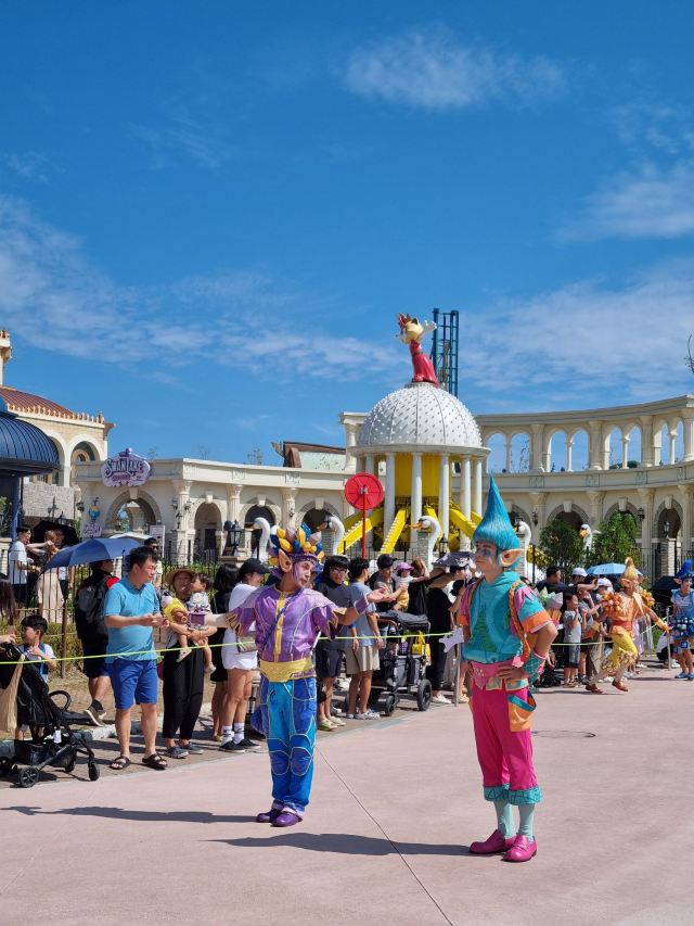 除了游乐设施,精彩的表演秀也让人惊艳!魔术表演🎩和音乐剧🎶都非常精彩,看得目不转睛。园区餐厅的美食选择也很多,从韩国料理🇰🇷到西式餐点都有,满足各种口味😋。