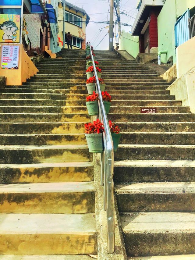 168台阶位于韩国釜山东区,是一处充满历史和文化气息的景点。这些台阶连接着山丘上的居民区与城市的低地,曾是当地居民日常通行的重要通道。如今,168台阶不仅是通行的路径,更成为游客探索釜山历史和文化的热门地点。
