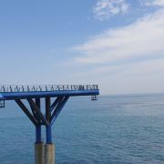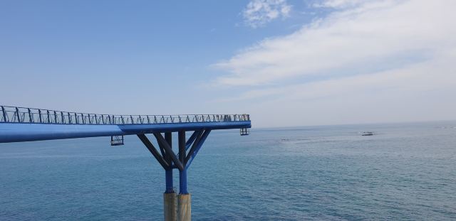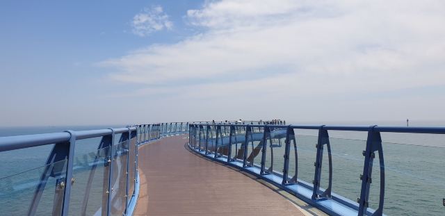 这座72.5米长、20米高的蓝色龙形天文台耸立在海面上,令人印象深刻。游客可以从透明的玻璃地板上看到脚下的海洋,享受在海上行走的惊险体验。