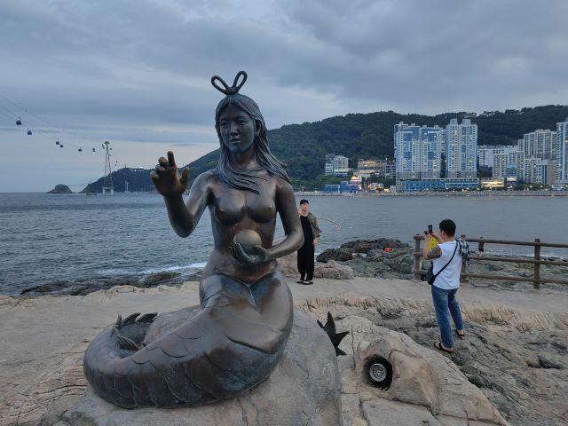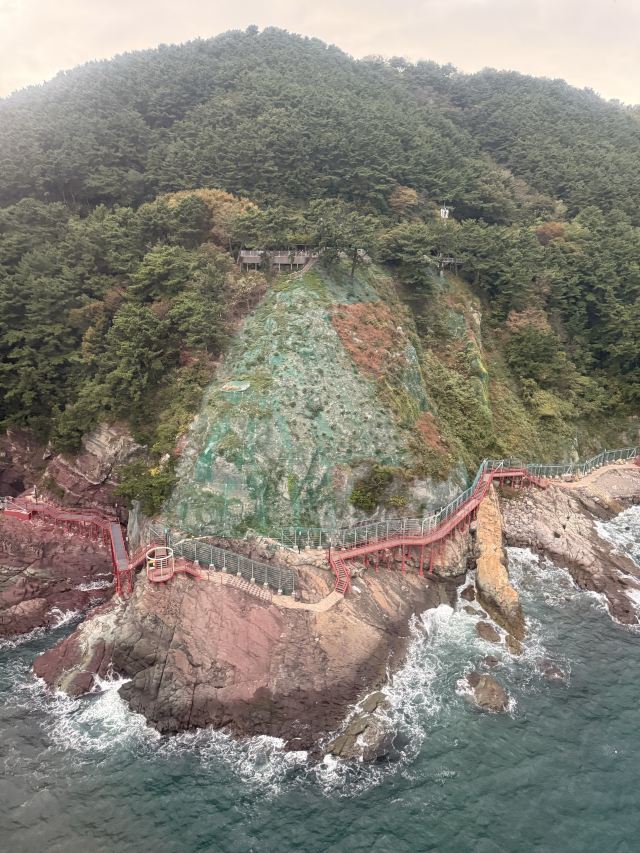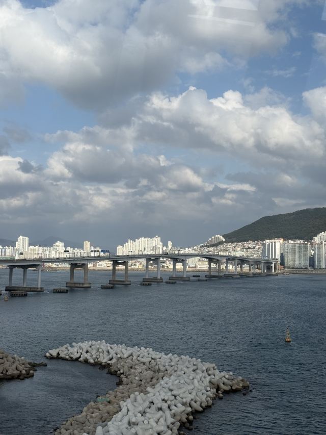 - 必拍:缆车与龙宫云桥同框、礁石群、釜山港大桥+万吨巨轮远景。