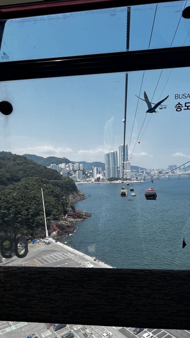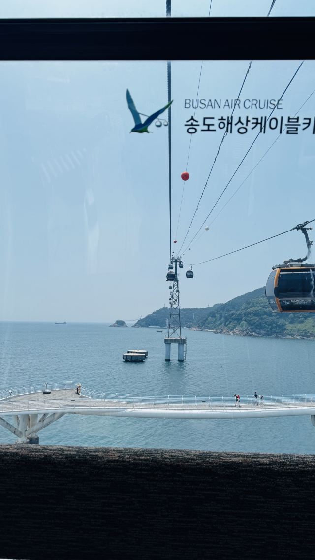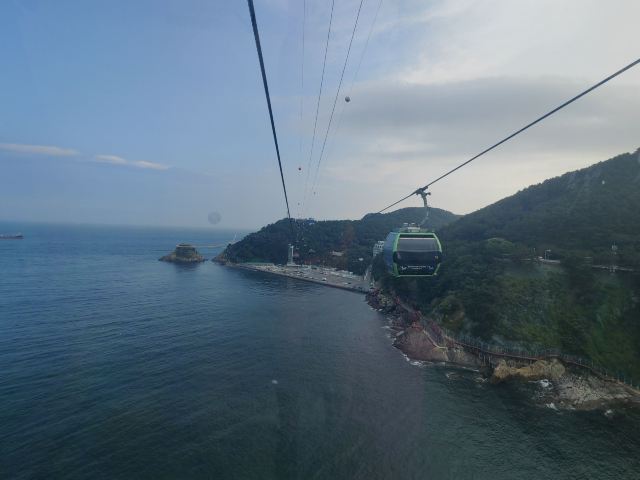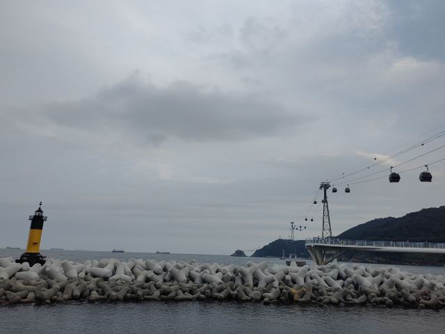 釜山松岛海上缆车,全长 1.62 公里,穿过翠绿色的水域。人们可以在缆车上俯瞰松岛海水浴场、岩南公园、影岛、南港大桥、龙头山公园等景色。夜间还能欣赏码头,船舶的灯光及南浦洞城市的霓虹灯,从高空将松岛夜景尽收眼底。缆车路线由松岛海水浴场东侧的松林公园至西侧的岩南公园为止,在缆车下方有天空步道,吸引众多游客来此游玩。