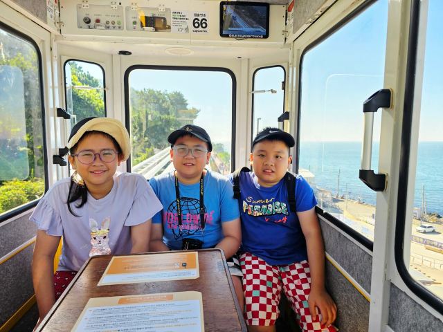 - 尾浦站位于海边的右侧,有海云台海水浴场、冬柏岛、广安大桥,中间可以看到二妓台和五六岛。也可以使用Sky Capsule。