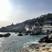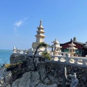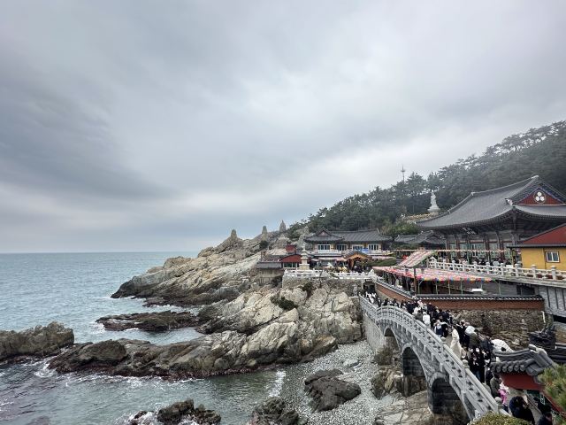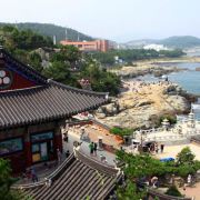 海东龙宫寺位于釜山东海岸,是韩国一座位于海边的寺庙,周边景色非常优美。龙宫寺由曾经做过恭民王的王师的懒翁于1376年创建,该寺庙依山傍海,景色秀丽。