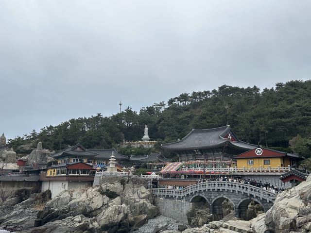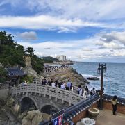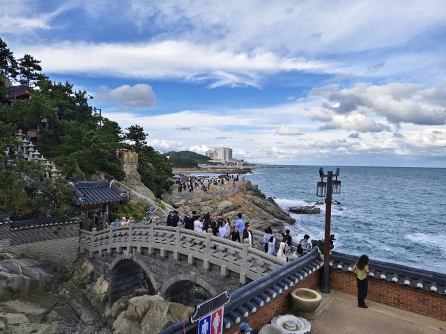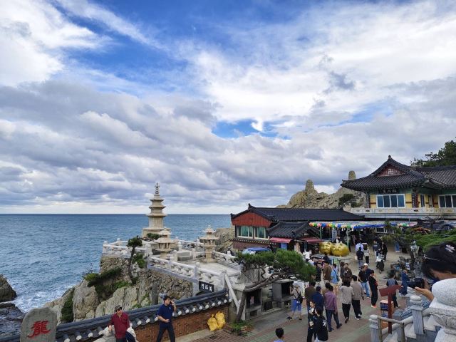 5分 超棒海东龙宫寺由高丽恭愍王的王师懒翁大师创建于1376年,原名普门寺,是韩国三大观音圣地之一。因结合海、龙与观音大佛,使这里比其他地方有着更深层的信仰意义。传说只要在海东龙宫寺真心诚意地祈祷,菩萨将会于梦中显灵并实现一个愿望。寺院曾因壬辰倭乱的战祸被烧毁,1930年代初期由通度寺的云岗和尚重建。1974年晸庵僧人担任住持时,发愿要恢复观音道场,祈祷了百日之后,他梦里出现了乘着龙、身穿白衣的观世音菩萨,因此将寺名改为海东龙宫寺。