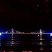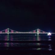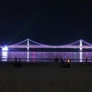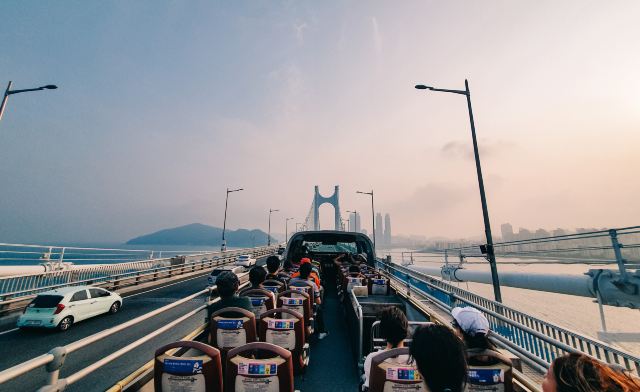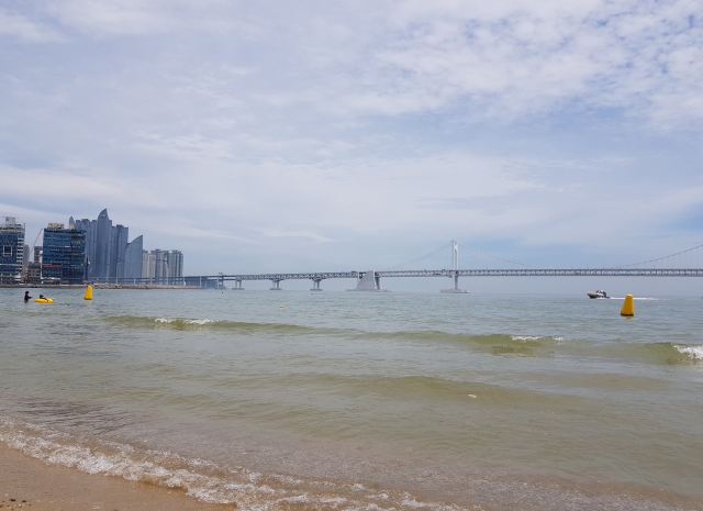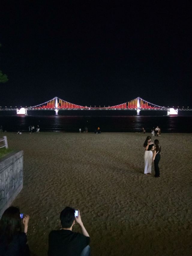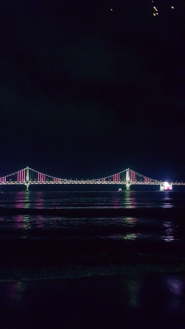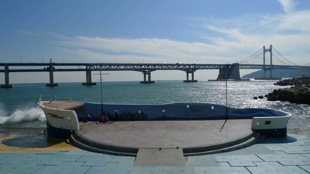 在桥上俯视下方,玲珑剔透的广安里白沙滩、海云台冬柏岛和迎月坡都尽收眼底。在这里白天可以欣赏周边的美丽风光,感受大桥的雄伟壮观,夜幕落下之后,大桥灯火辉煌,演绎出一幕幕色彩缤纷景色,引人注目。