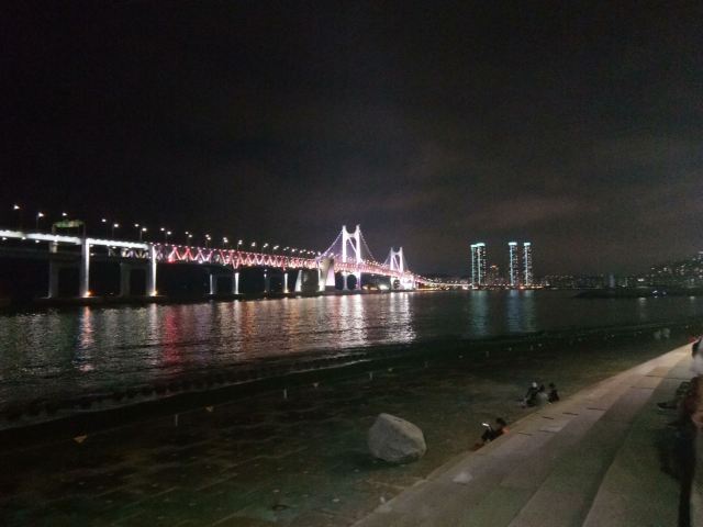 4分 满意这里以“钻石桥”而闻名,晚上的时候这里会亮起数量众多的LED灯。这座桥开放于2003年,这里是釜山的金门大桥。同时这里也是韩国第二大的吊桥。你可以从天文台关上这里的美丽景色,同时也可以沿着丽水白岛(Dobgbaek Island)的海岸漫步,或是参加晚间的釜山市巴士之旅。我听说十月份是观赏大桥最棒的时节,因为那个时候正值釜山国际烟花节。到广安站下车,回走往广安里海滩直走去,要走一段时间,到那里刚好是看到广安大桥的中间,这座桥有上下二层,釜山最长的桥,广安沙滩平整可以沿途走约一小时多,到南川社区那边看樱花,当然是要樱花季节才能看到喔!个人觉得如果只是为了看桥,去看就有些不值得,如果要在沙滩上或附近走走,散步一下,可能感觉会更好喔!