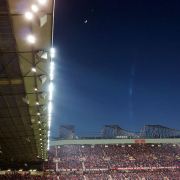 这座老特拉福德球场落成于1949年,作为英国的足球场,它可以容纳75000名观众,和温布利球场一样,是经过欧洲足联认证的英国六大足球场之一,还获得了“梦剧场”之称。在曼彻斯特风靡的体育项目中,足球是曼彻斯特文化的重要部分,据统计,大曼彻斯特区的球会数目是全世界相当高的,尤其是老牌霸主曼联队和崛起的新贵曼城队,每年都会在双方的球场上演万众瞩目的龙虎斗。几十年来,曼联队这支绰号“红魔”的球队缔造了无数荣誉和足坛传奇,堪称欧洲足球俱乐部中的经典代表。而老特拉福德球场作为曼联队的主场,也成为了许多球迷心中的圣地。每当曼联坐镇主场时,老特拉福德球场便会被球迷们围个水泄不通。