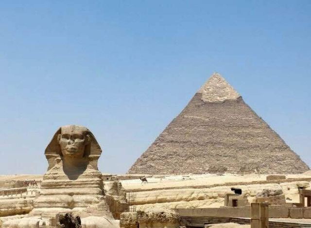 卡夫拉金字塔是吉萨金字塔群中的二大金字塔,仅次于胡夫金字塔,也是一座保有石灰岩原始塔顶的一座金字塔,其塔顶虽已斑驳,却给后人留下了金字塔原始的面貌。