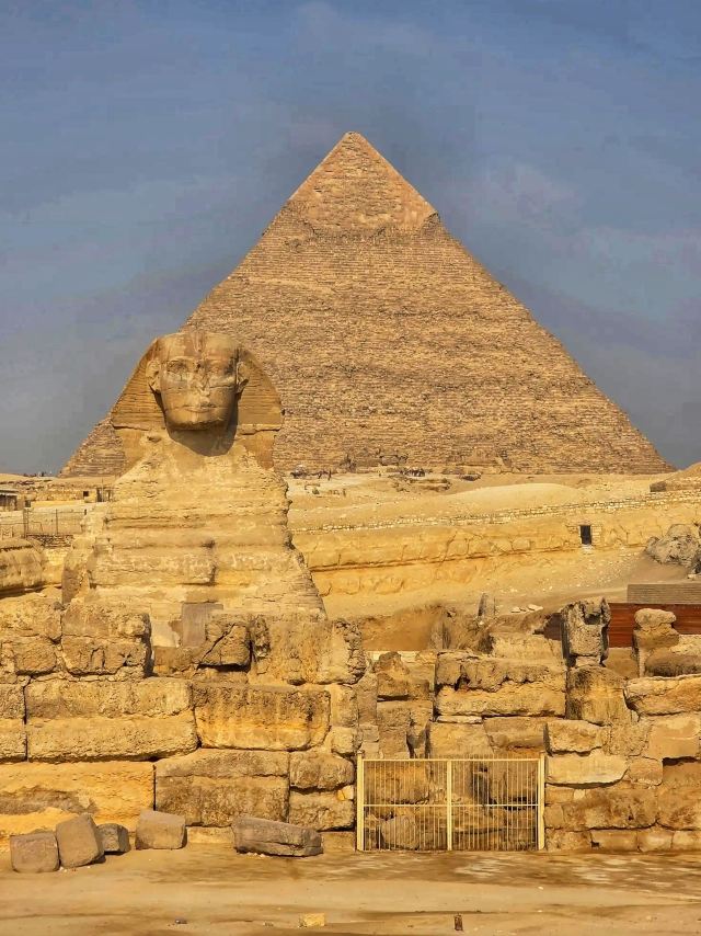 5分 超棒卡夫拉金字塔比胡夫金字塔略小,却更具视觉冲击力,部分石灰石外壳至今仍包覆在顶端,阳光下泛着淡淡光泽。靠近时能感受到它结构上的紧凑与对称,比想象中更沉稳有力。与狮身人面像相望的位置也让它多了几分仪式感。站在金字塔下仰望,仿佛能窥见古埃及人对神权与永恒的执着,感受一种难以言说的震撼。
