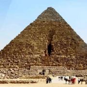 孟卡拉金字塔是吉萨三大金字塔之一,也是较小的一座。这是埃及第四王朝的法老孟卡拉的陵墓,其内部有一间与其他墓室都不一样的神秘墓室,可以看到六个明显的壁龛。