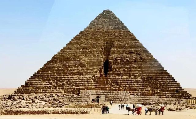 5分 超棒【蒙卡拉金字塔】 蒙卡拉金字塔由埃及第四王朝法老蒙卡拉建造,他是胡夫的孙子,哈夫拉的儿子。蒙卡拉金字塔原高65.5米,现高61米,底座每边长108.5米,是吉萨金字塔群三座金字塔里,规模最小的一座,英国探险家理查德•威廉霍华德•维斯,首次打开这座金字塔时,在墓室中发现了一具花岗岩石棺及法老木乃伊,不幸的是,这座石棺如今正躺在地中海底,1838年10月13日,装运这座石棺和其他文物的比阿特丽斯号船在返回英国途中遭遇意外,石棺和木乃伊都沉入了地中海。