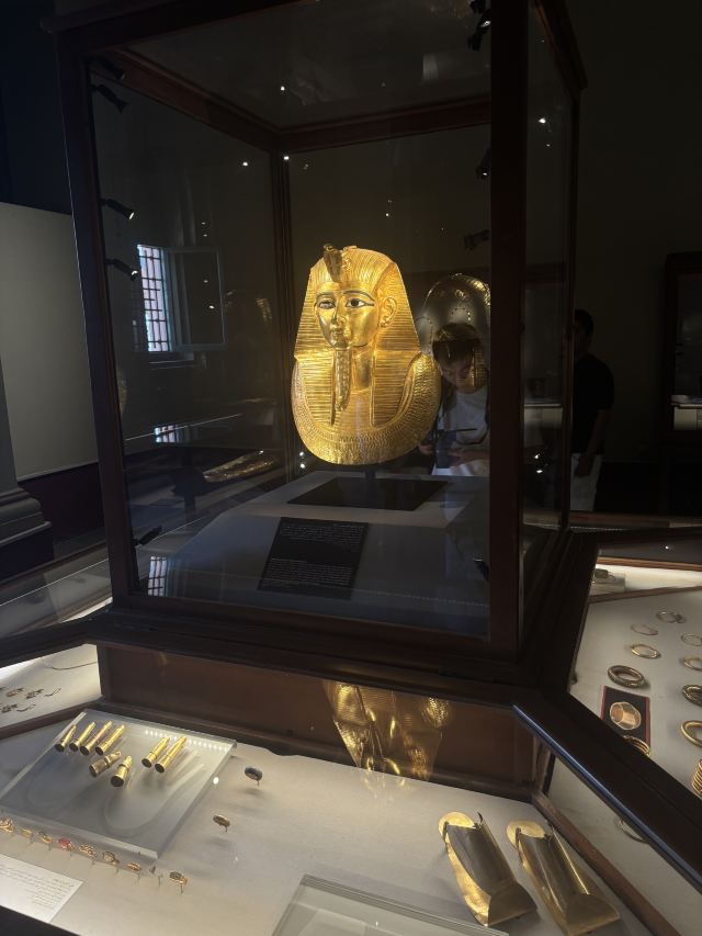 相比一楼展厅,二楼是以专题陈列室的形式展出,且展品也比一楼更为珍贵,而这里颇受关注的为图坦卡蒙法老的展示间。在此你可以亲眼目睹法老金碧辉煌的黄金葬礼面罩、黄金棺材、黄金宝座等。此外,图坦卡蒙陈列室中还有1700余件的出土文物值得欣赏。