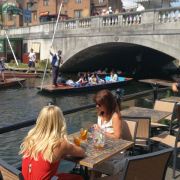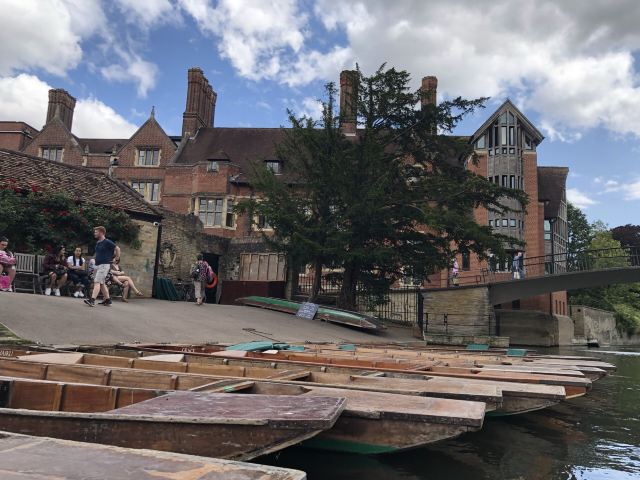 5分 超棒依照导航来到剑河边,自有帅气小哥举着牌子来问你,要不要撑船。如果你想看河上风光,看一下那几大学院,就乘船吧。因为河道两边的那一路段都被封锁,是进不去看不到的,看到河边那一道栅栏铁门拦住了多少中国游学生。河边有一个sports and social club,依河而建,正是特色的social。