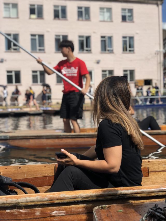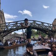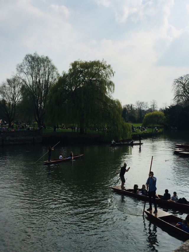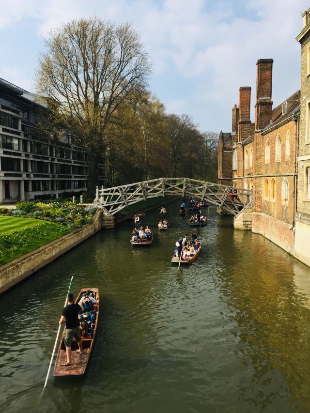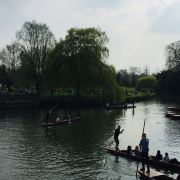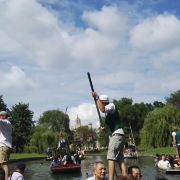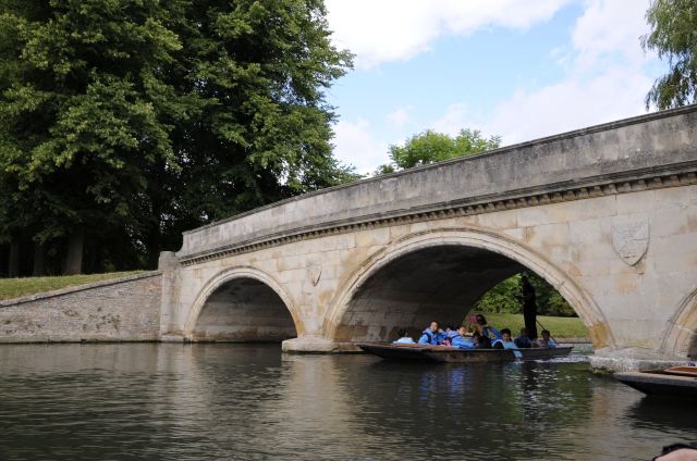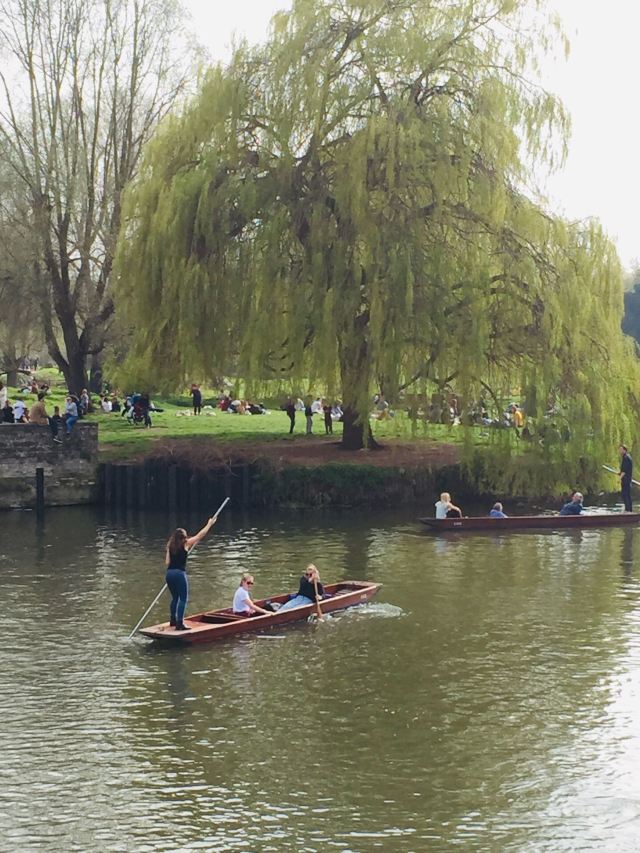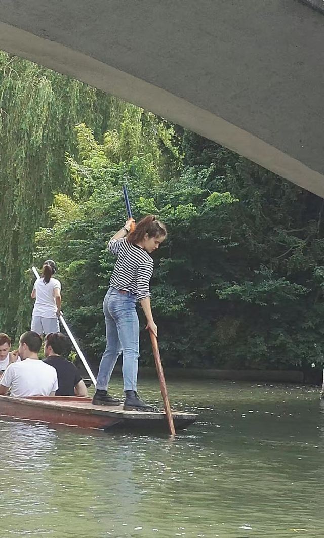 4分 满意到剑桥来肯定要坐坐“撑篙游”。随大流,选了会经过那几个重要学院的剑河游。大概6-8人一船。有挺帅的小伙子来punting.