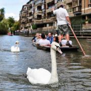美丽的卡姆河是剑桥的象征,在过去很长一段时期卡姆河被当地人称作River Granta和卡姆河,指的其实是同一条河流,前者特指剑桥市至格兰切斯特庄园(Grantchester)一段,即河的上游,这段河流曲折,岸边风景自然淳朴;后者为河的下游,河面较为宽阔,水流平缓,岸边尽是剑桥大学校园的华丽建筑,即后园景观(The College Backs),所以在当地租船漂流时,船主会问“Granta or Colleges?”。来剑桥一定要撑篙游览,漂流于卡姆河之上饱览两岸风光。