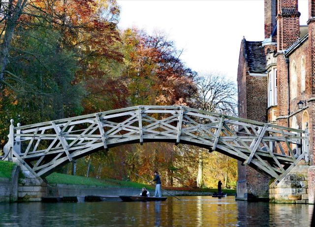 沿着康河漫溯,会穿过数学桥、叹息桥,两岸咫尺之遥会有国王、三一、圣约翰等建筑风格各异的学院,偶尔还会有穿着长袍的学者从草地走过,仿佛历史上那些先哲走入碧绿的画卷中。