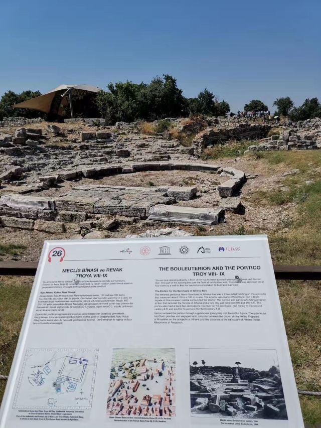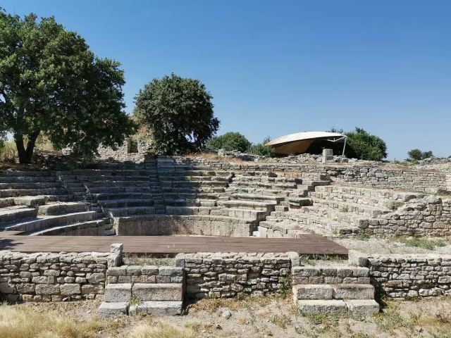 特洛伊战争比较著名,其中战争结束时的大木马也被摆在了景区大门口。其实这个景点是特洛伊的遗址,据说当时战争就是在这发生的。整个景区也非常大,但是遗迹都比较矮小,显得很空旷。景区也分为开发时间不同的各个部分,团里的导游沿途给大家介绍,介绍的比较详细。游览结束后大家可以爬上门口的大木马内部,其实就是三层小木楼,拍拍照。