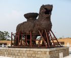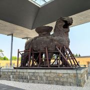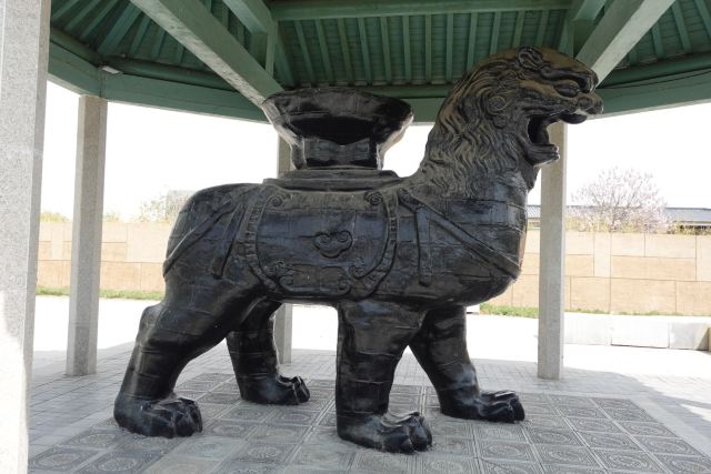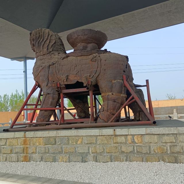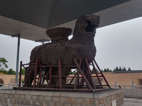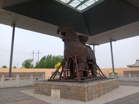 沧州铁狮与旧城遗址公园位于沧县东南部,民间称之为“镇海吼”,铸于五代后周年间,距今已有一千多年的历史。铁狮相传为遏海啸水患而造,是我国现存年代较为久远、形体较大的铸铁狮子。铁狮身高5.78米,长5.34米,宽3.17米,背负巨盆相传是文殊菩萨莲坐,狮身向南,头向西南,两左脚在前,两右脚在后,呈前进状,姿态雄伟,昂首阔步,栩栩如生。1957年由主管部门予以补项补趾,并修池建亭,周围还设有铁栏,建亭后由于铁狮见不到阳光,氧化较快,于1972年将亭拆除。如今来到景区,除了可以观看巍峨古老的铁狮外,旁边还建有一处钱币博物馆,可以一并参观。