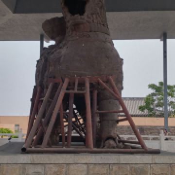 仰视的姿势都是高大上,只是保护的差强人意。保护者错误的将水泥灌入,而造成热胀冷缩的断裂,真的飞不起来了。