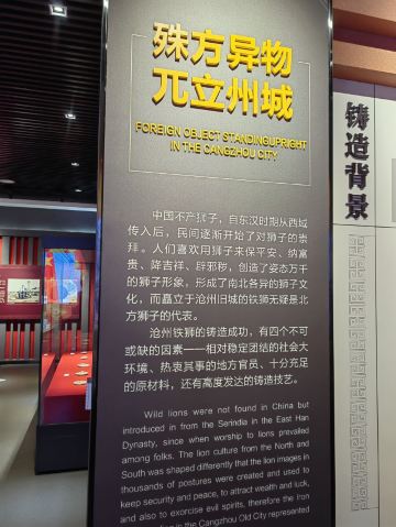 5分 超棒中国最大的千年古铁狮本身就是个奇迹!再加上它形态独特,雄壮高大,乍走还停,神态威猛,这个“河北三宝”绝不是一个傻大个笨铁狮子那么简单!那威风凛凛的神态让你无论从那个角度都怎么也看不够。另外,沧州为铁狮开发的确动了脑筋,不仅围绕铁狮建设了美观、优雅、信息丰富的旅游线路,让你在看到这个雄壮又可爱的铁狮子前,已经有了深入的了解和一睹真容的冲动。继续深入挖掘,在铁狮园还修建有铁狮博物馆,全面快速了解铁狮以及沧州古城历史,让你认识并爱上这个一直不能引起你注意的古城。博物馆旁边还有个铁钱库博物馆,这更是个从来没有人听说过的独特文物所在,那聚合在一起正在销毁的的以吨计量的钱串,不仅寓意美好,更可激发你和孩子对沧州古城历史的兴趣和探究欲望。离北京天津都很近,周末假日带孩子来吧,沧州真的不会让你失望!