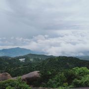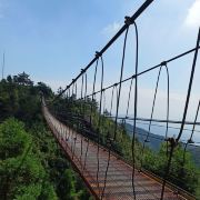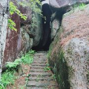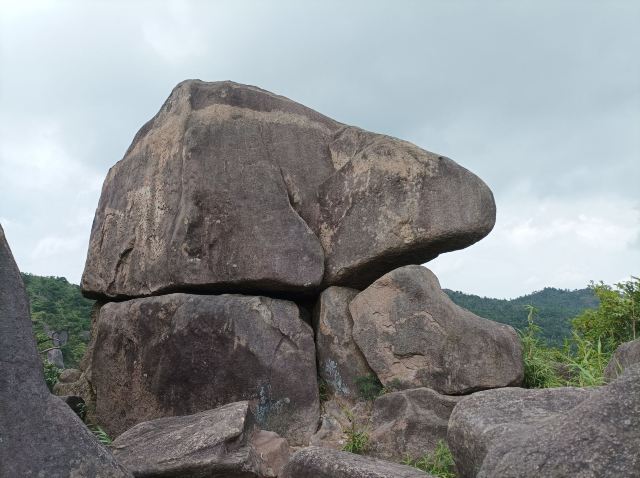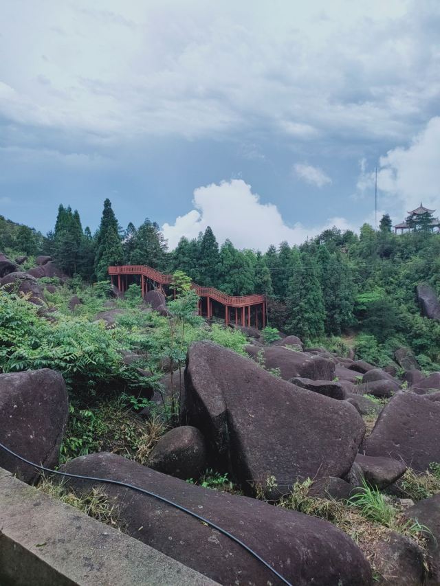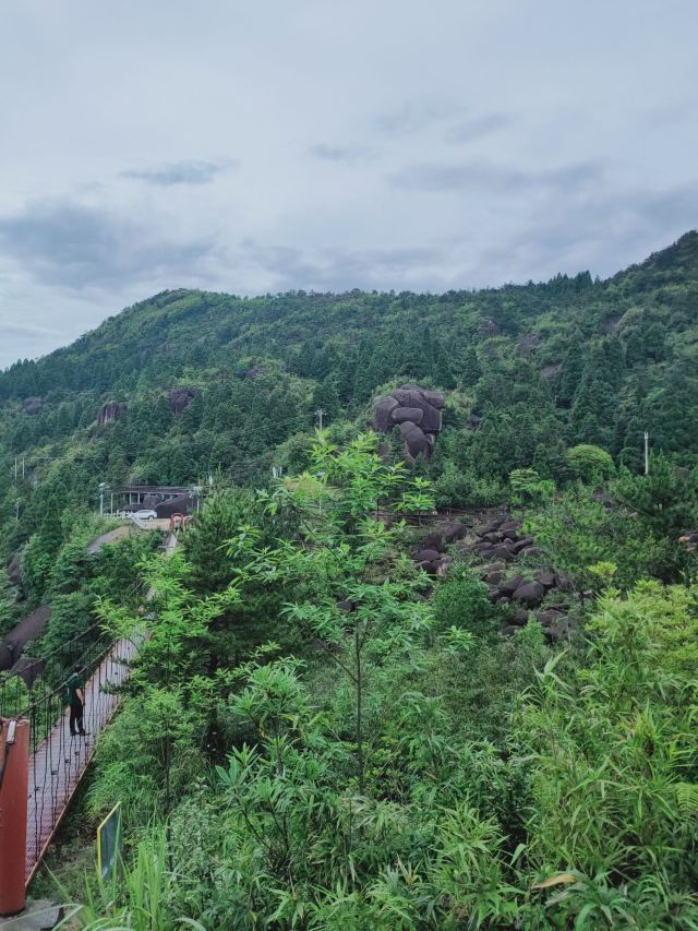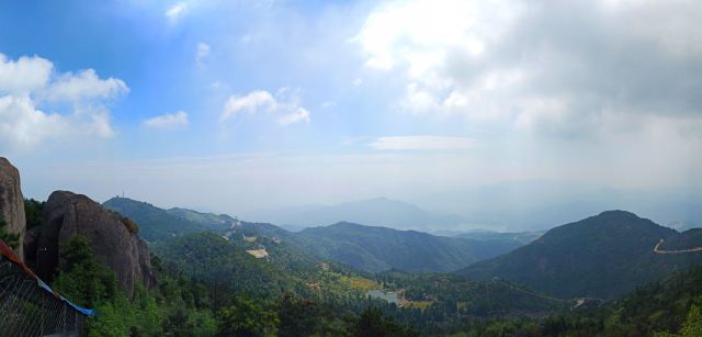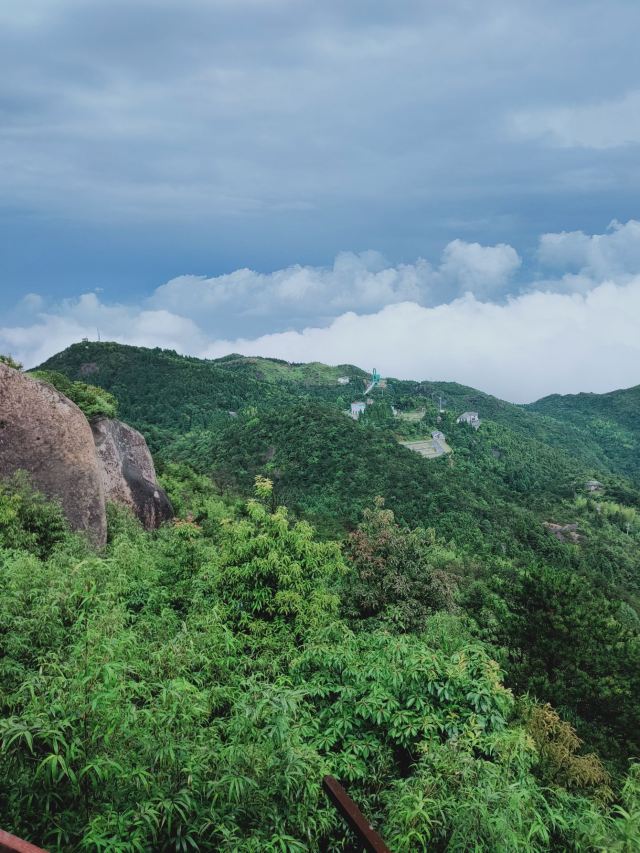 很多地方都有自己的特色,对于苍南来说,玉苍山是屈指可数的一处了。每天在她的脚下工作,今天抱着很高的期望来到了玉苍山。与家乡的山不同的是,这里的山植被非常的茂盛,有南方的竹子,也有北方的松树,还有好多叫不上名字的植被,真的是个天然的氧吧。沿着台阶一点点往顶峰爬,体力不行的我歇了好几次。当地人都非常热情,用着不太标准的普通话告诉我们怎么游山等等。今天烈日当头,唯一支撑着我爬到顶峰的就是寻找凉亭。到了顶峰,往下看上去非常的漂亮,尤其是远处的若隐若现的山脉,就像是看到了画一样。路上行人不多,听当地人说等黄金周的时候这条路上会挤满人,估计那时候就是看人不看景了。除了植被和怪石,今天让我每一次见到的是一种叫蓝尾石龙子的小动物,像是有着蓝色尾巴的蜥蜴。开始的时候因为害怕还吓了一跳,它会在你不经意间以极快的速度在你的视线里出现又迅速消失,而给我留下的只是一身汗和发呆的眼神,特意上网查了一下资料。整个玉苍山没感觉其它的特别,可能是没有在这个角度发现她的美。不过今天让我难忘的不是玉苍山的植被,也不是它的怪石,更不是那个小小的蓝尾精灵,而是在来山上的那蜿蜒曲折的山路,坐在小客车上,司机以其娴熟的驾驶技术让我这有着十年驾龄的人看的目瞪口呆。真的像那首歌里唱到的山路十八弯,我倒觉得这路上的风景甚至超过了山里的风景。路上随着海拔的不断升高,在山里的位置不一样,眼前看到的景色是不断变化的,像是一个风景电影一样。以至于回来的路上,我都舍不得闭上困极了的眼,又重新从不同高度感受了一样山里的美。驾驶技术不熟练的真的不建议自驾来,会错过一路的风景的。回到车站,路边的一个小吃不错叫灯盏糕,可能是体力消耗过大感觉非常的好吃,是用糯米做的皮,用豇豆、肉、豆干、芋头等做成的陷,吃了一个饱了。总结下来,玉苍山需要从不同的角度去发现她的美。门票五十,车费十块(从桥墩出发),供参考。不建议节假日来。
