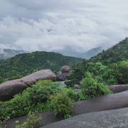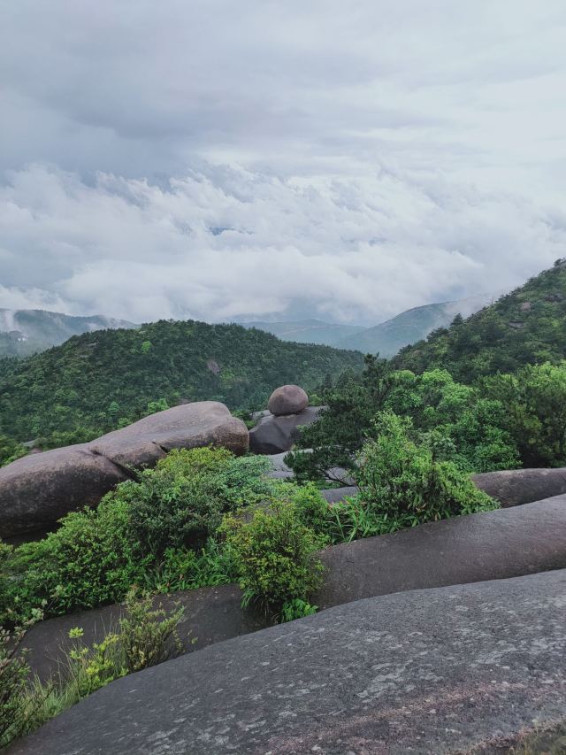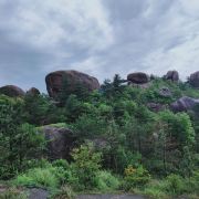 玉苍山国家森林公园原名白云山,位于苍南县西北部,距县城灵溪镇32公里,由中心景区和东南西北共5部分组成。怪石、日出、云海是山中“三绝”,石景为突出,出名的有摇动岩、回音石等,也有古寺之类的人文景观。主峰大玉苍海拔921.5米,海拔不算高,景区以此为中心。由于交通不算方便,来这里的游人不算多,景色也称得上原始,自驾来此花上半天爬爬山锻炼身体感觉不错。景区四面都有入口,由南面停车场出发,经摩天岭登顶大玉苍峰距离近。摩天岭陡峭险峻,石体浑圆无棱,但砂状花岗岩的摩擦系数很大,游人能有惊无险地登上玉苍极顶。极顶周边几十公里范围内都是群山,可领略一番“会当凌绝顶,一览群山小”的意境。玉苍山黑色的石海、白色的云海和绿色的林海尽收眼底。登顶路上,龙门湖附近,座落着一座千年古刹法云寺,为苍南第一禅林,寺中一块形似寿桃的石笋拔地而起,刻有“皇朝寿山”四字,相传是明朝正德皇帝游江南时留下的笔迹。此外还有一件大铜钟,重达1300多斤,也是看点之一。