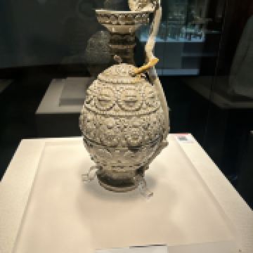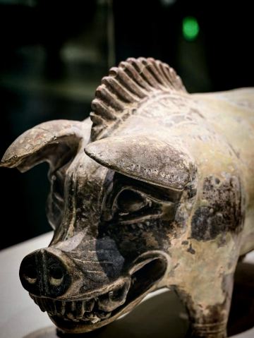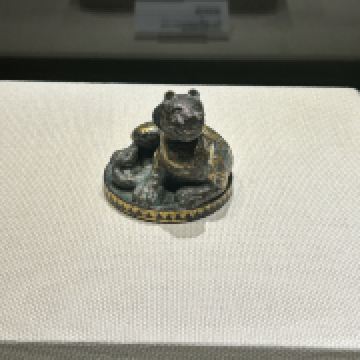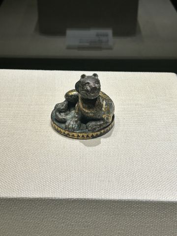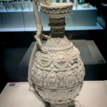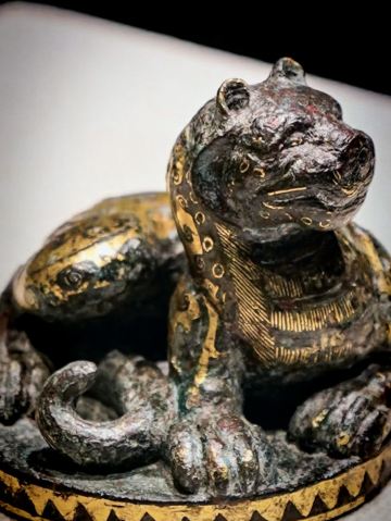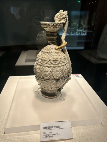 博物馆的镇馆之宝——北朝青釉堆贴花龙柄壶,更是让我惊叹不已。这件文物出土于沧州第一砖厂,通体施青釉,堆贴了18层纹饰,工艺精湛,堪称北朝青瓷中的珍品。此外,汉代的错金豹镇也十分精美,造型生动逼真,展现了古代高超的铸造技艺。