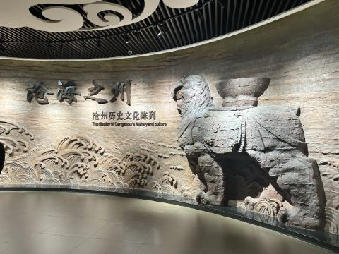 4分 满意沧州市博物馆是沧州地区规模最大、藏品最丰富的综合性博物馆。博物馆交通便利,在高铁站和火车站之间都有公交直达。博物馆需要身份证领票,带包要寄存。总共有三层楼,好几个展区。其中,沧州历史陈列馆、沧州中国大运河陈列馆为该馆精品之作,布展能力、灯光设计、环境处理都非常不错。沧州历史陈列馆力求不放过历史中关于沧州的缝隙,历史内容十分翔实,在河北省内仅次于河北省博、邯郸博。其中,两汉隋唐时期的河间国、渤海国部分最为精彩。沧州亦是运河名都,境内有230多公里的京杭大运河。三楼的运河馆主要分中国大运河、河北运河、沧州运河、运河申遗等四大部分。另有沧州历史名人馆、沧州民间工艺馆等馆。由于时间急,只待了3个小时,并没有全程走完。