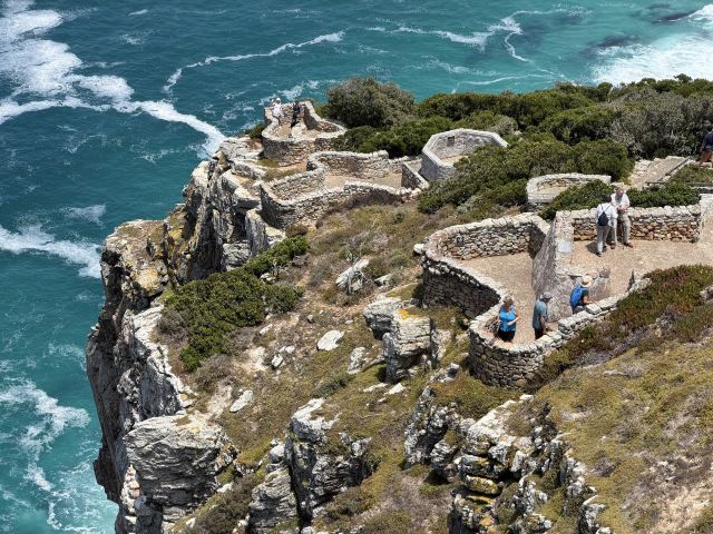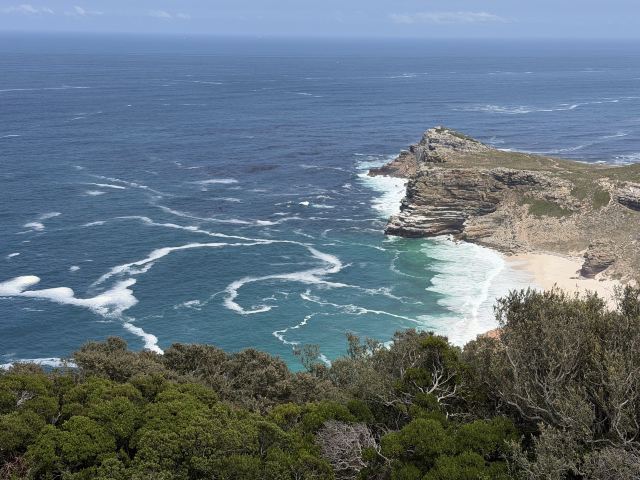 开普角位于南非开普敦以南,是开普角自然保护区的一部分,以其壮丽的海岸线和丰富的生物多样性而闻名。这里是大西洋和印度洋的交汇点,提供了不错的观景机会。游客可以沿着步道徒步,欣赏到悬崖峭壁和广阔的海洋景观。开普角灯塔是一个标志性建筑,游客可以通过缆车或步行到达,享受全景视野。