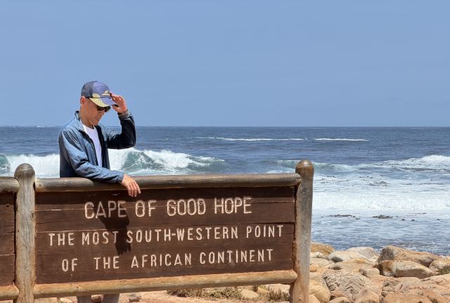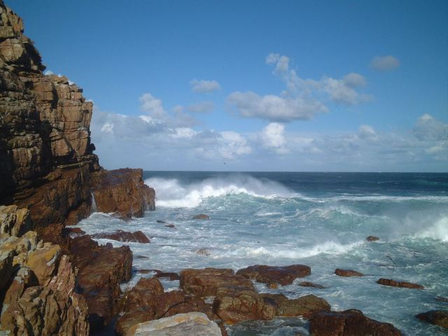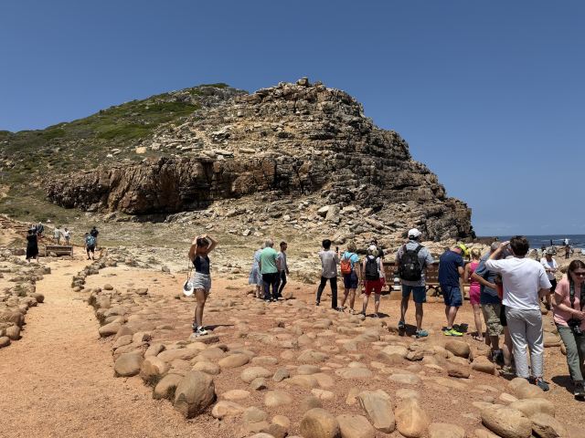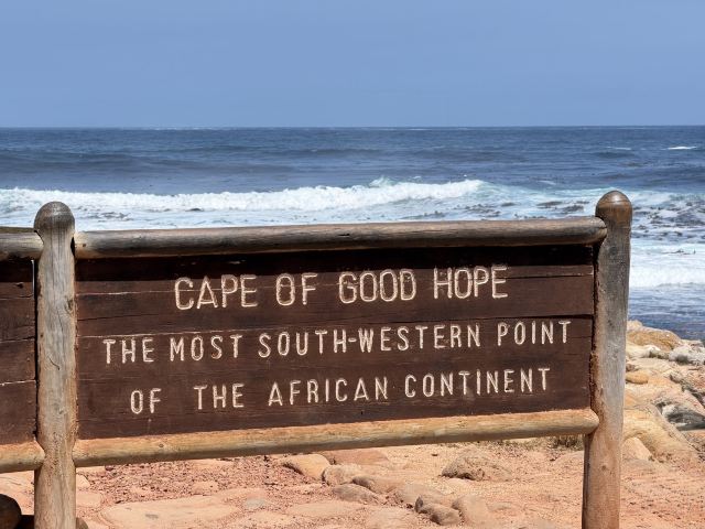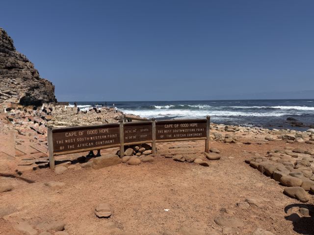 从开普角的上下来后,便可前往好望角。好望角是一个突出的小山岬,这里气象万千,景象奇妙。天气晴朗的时候,可以看到湛蓝的天空,深蓝的海水,棕色礁石和白色浪花,以及清爽的海风和一群群自在飞翔的海鸟。
