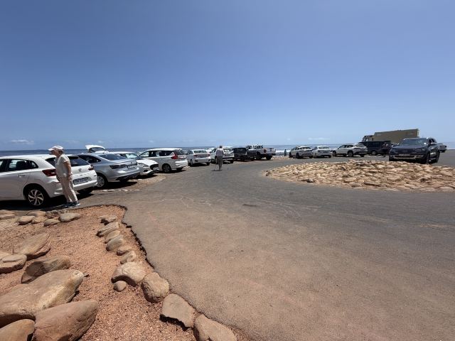 好望角虽在保护区内,但却可以开车进入。景区大门非常简单,进入后两旁都是鲜花灌木,绵绵远山。在通往好望角的路上可以远远看到远处山坡上有一座黑白分明的纪念碑,这座纪念碑是为了纪念从欧洲绕好望角到印度航海路线的开拓者——葡萄牙航海家达伽马的,由于纪念碑在上坡上,山上杂草丛生,基本无法达到纪念碑脚下,只能远眺。