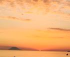 整个海滩呈圆弧形的,可以看到远处的高山。虽然是盛夏,但是在海风的吹拂下并不觉得热,而且可以下海。有很多老外在晒日光浴呢。