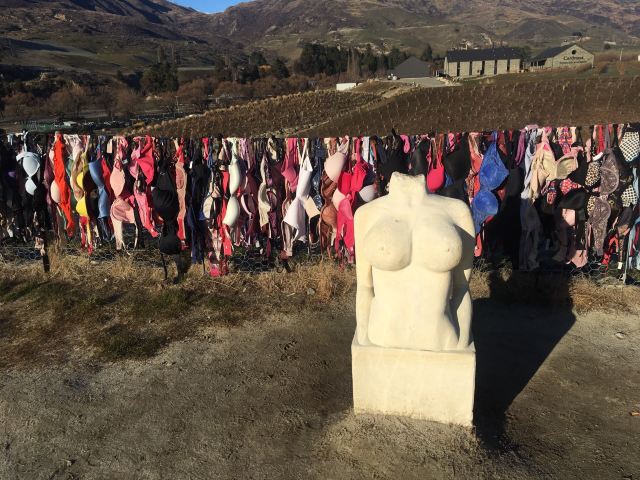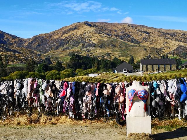 在新西兰南岛有位于Cardrona著名的Bra Fence(内衣墙)一处围栏,栅栏覆盖着数以万计的女人 内衣。墙是在皇后镇和瓦纳卡之间,该流域有两条路可以走,一条是6号公路,穿过水果城克伦威尔,大约需要1.5个小时,另一条路是皇冠岭路,大约1个小时车程。