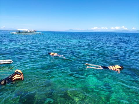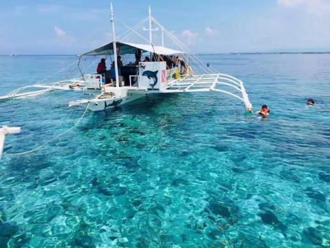 邦劳这里海豚一定要看,晚上到麦当劳附近找小黑订一下就好,一般650-700 P 一个人,6点去看海豚,之后浮潜,然后去处女岛,12点返回,不含午饭,最好自备,岛上也可以要个快餐,主要是不好吃,而且菲律宾室外吃饭就是和苍蝇做斗争。另外记得早上提前穿好泳衣或浮潜服,岛上换衣10p 一次,关键你看那个环境简陋极了。之后去处女岛,我们就买了真正巴掌大的鲍鱼,200p 一个还到500p6个,装上水放到船上小木桶,带回公寓处理掉内脏,配上调料水开大火蒸六分钟就好,Q弹,实在不相信岛上居民的水平,还是自己做不浪费食材。体验深潜开价一个人2500,可以还到1500p,大约半小时,包括拍照。最好晚上5点之后去海滩,白天太晒了。薄荷岛待个4,5天就可以了。