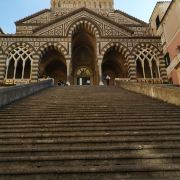 圣安德烈大教堂始建于10世纪前半叶,是阿马尔菲的主教教堂。这座结合了各种建筑风格的教堂,外观以深灰色与乳白色为主,内部多为巴洛克风格,富丽堂皇,华美而精致。长长的台阶直通到教堂的正门,回廊里埋葬了昔日阿马尔菲的王公贵族。而教堂里较珍贵的,莫过于埋在教堂地穴的圣安德鲁的遗骨,是阿马尔菲的保护神。如今,也只有在重要的宗教活动中,它的遗骨才会供人瞻仰。