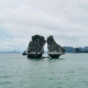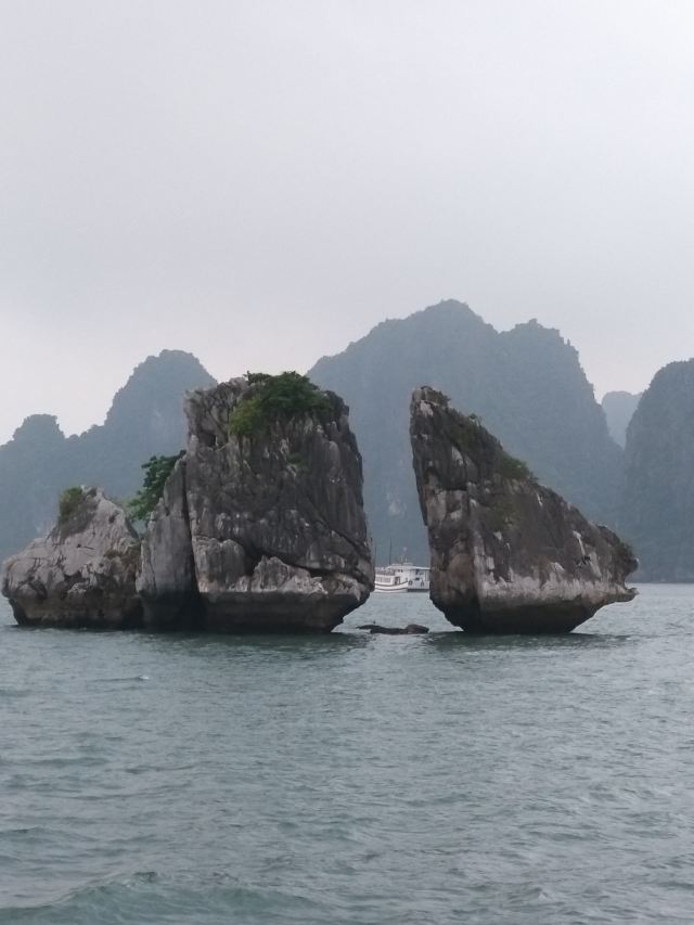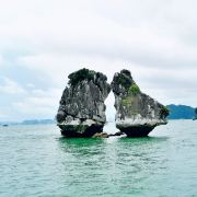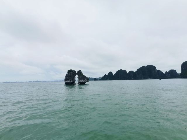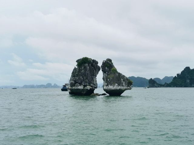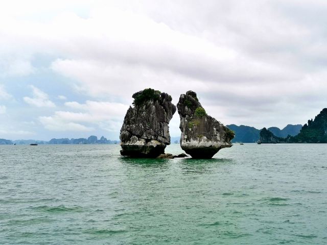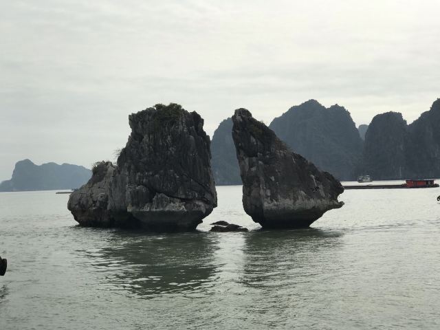 1、“斗鸡石”位于越南著名景点“下龙湾”。下龙湾是越南北部的山水名胜,是世界自然遗产,被瑞士New7Wonders评为“世界新七大自然奇观”之一,1万年前形成的海上喀斯特地貌旖旎秀丽,1969座山峰突立海面,被誉为“海上桂林”,是越南旅游必打卡的景观。下龙湾历经沧桑,远古时期便有古人类定居,近现代曾见证了越南抗击蒙古、法国、美国的多次海战,也是《金刚:骷髅岛》、《007:明日帝国》等影视大片的取景地。整个海湾面积巨大,达1553平方公里,最大水深达30米。