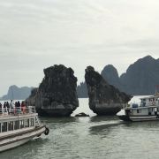4分 满意北越南这里,下龙湾是一个大家都想去的地方,因为风景和其他地方不太一样。。在海湾里面,有很多形状很特别的石头山,像桂林的山水画一样。。一般游客都是安排乘坐四五个小时的船,在水上面兜来兜去,给游客拍照。有船家开来旁边,售卖海鲜,中午在船上吃饭的时候可以加菜。水不是很清,看不到下面的东西,也没有人游泳。对于一个喜欢下水的人来说,水不是特别的漂亮,只是石头山的形状蛮特别的。