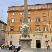 万神殿位于罗马市中心,其前庭是罗通达广场,有一个竖立着高大尖顶方碑的喷水池,方碑基座雕有古罗马神话场景。